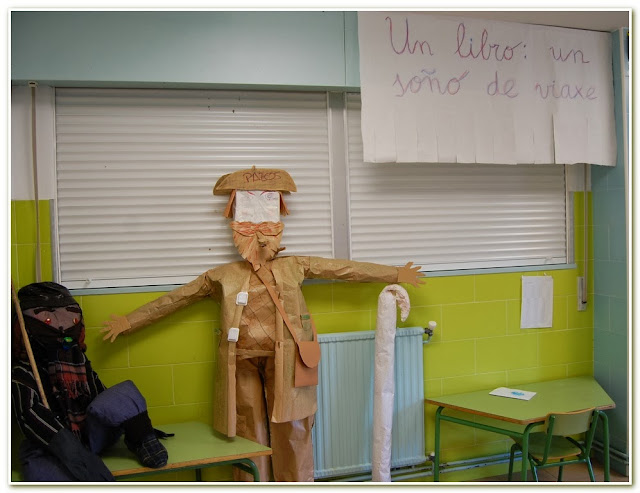 No comedor tivemos unha sorpresa. Prepararon un Apalpador moi ecolóxico que levou premio por estar feito con materiais reciclados. O esqueleto é de botellas de plástico, e así de guapo quedou.